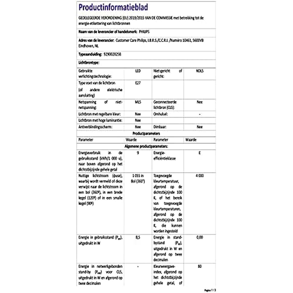 - Códigos logísticos 12NC: 929002025857