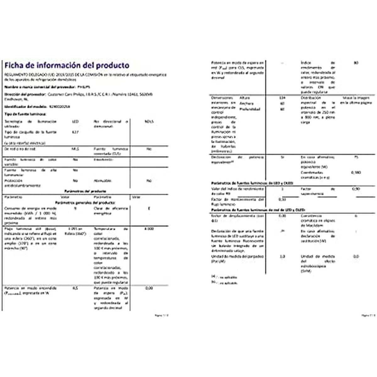 - Vida útil de la bombilla ( 2,7 horas/día): 15 año(s)