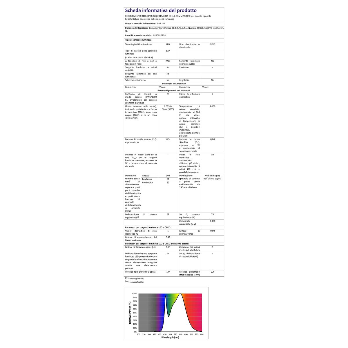 - Potencia de la ampolla equivalente: 75 W