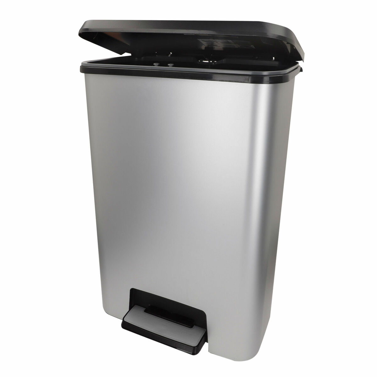 Gestiona tus residuos de manera cómoda y discreta con el cubo de basura Compatta de Curver. Su diseño compacto y funcional, más ancho que largo, lo convierte en la solución perfecta para espacios reducidos, como debajo de encimeras o islas de cocina, donde no sobresale ni interfiere en el paso. Con una capacidad de 50L (48×30,5×62 cm), es ideal para el día a día, ayudándote a mantener el orden en la cocina o baño. Su borde de soporte garantiza que la bolsa se mantenga siempre en su sitio y oculta para un aspecto limpio, mientras que su base extraíble facilita la limpieza tras los pequeños derrames. Además, el pedal removible asegura una mayor comodidad al usarlo. Todo esto con un diseño moderno con acabado metalizado que combina con cualquier estilo de hogar.
