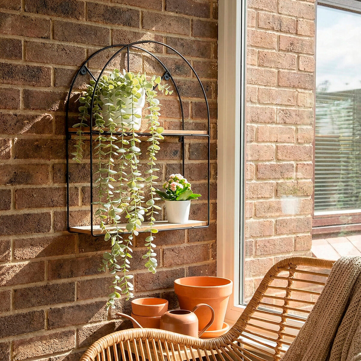 ¿Quieres optimizar tus espacios con un toque decorativo único? La estantería de pared Max Home es la solución perfecta. Con un diseño elegante de arco y 2 niveles, combina practicidad y estilo para integrarse en cualquier ambiente de tu hogar. Con unas medidas de 35x10x45 cm, su estructura metálica en color negro y estantes en MDF efecto madera crean un contraste moderno y versátil que se adapta tanto a salones como a habitaciones, entradas o baños. Para organizar y lucir objetos decorativos, plantas pequeñas, marcos de fotos, velas o accesorios, manteniéndolos siempre visibles y ordenados. Además, soporta hasta 4 kg de carga máxima, garantizando seguridad y estabilidad. Con un montaje sencillo y rápido, para quienes buscan un accesorio funcional y con personalidad que se integre fácilmente con distintos estilos de decoración. Dale un aire moderno, práctico y decorativo a tus paredes con la estantería de pared Max Home.